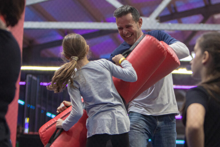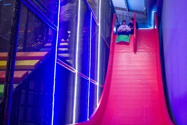 El Hi Climb incluye dos paredes de escalada con arnés y una zona de columnas verticales donde puedes ascender saltando. Ideal para quienes buscan escalada segura para niños y adultos.