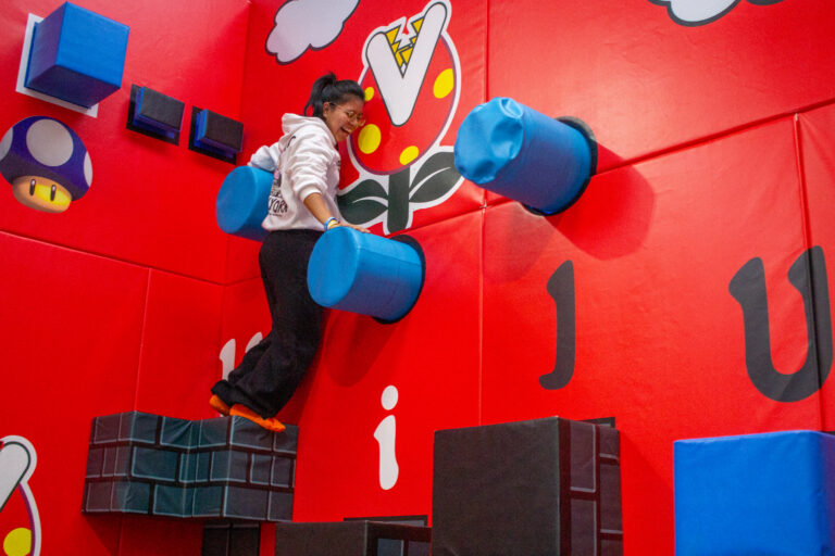La Spider Wall es una pared donde los jugadores pueden pegarse como Spider-Man. Es una de las actividades favoritas de los niños, perfecta para mejorar equilibrio, fuerza y creatividad.