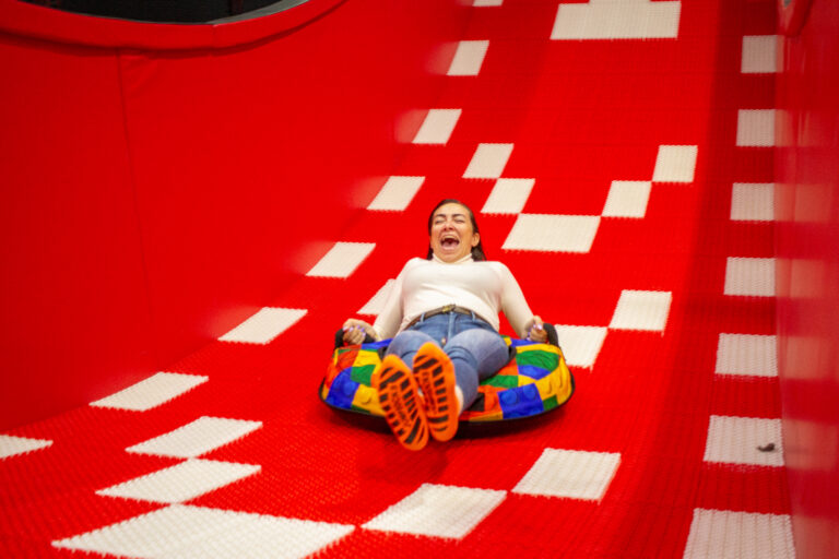 El Donuts Slide es un tobogán donde los participantes se deslizan en flotadores tipo donut, combinando velocidad y diversión para todas las edades.